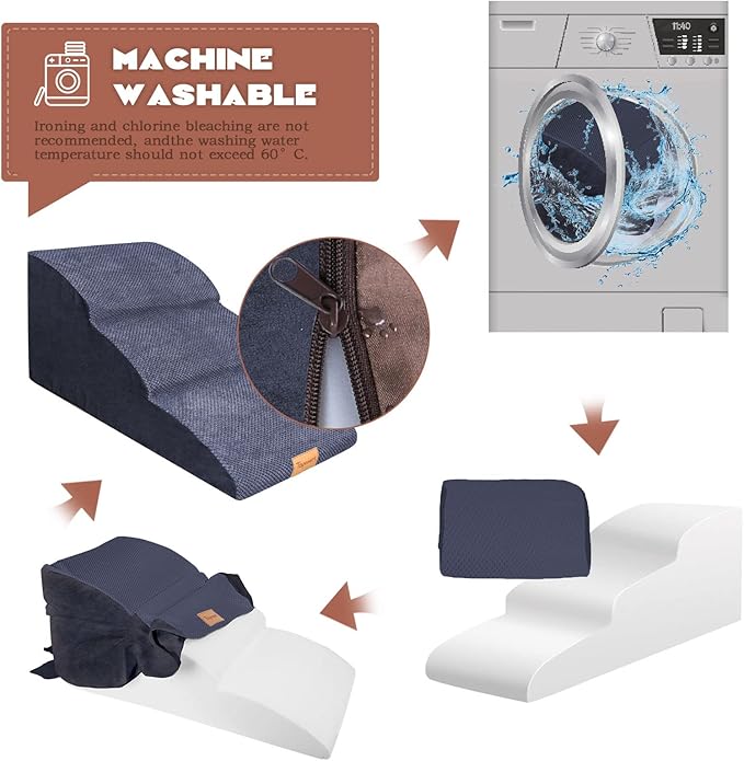 - Easy to Assembly & Clean: The stair cover is removable and machine-washable. Stair made of 30D High density foam,no frame,high rebound, not easy to lose shape. we recommend it for pets weighing less than 60 lbs.
