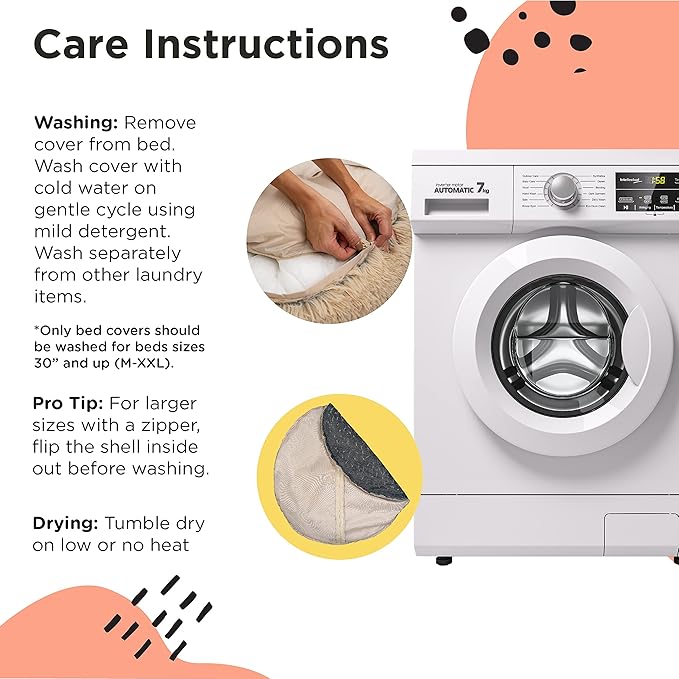 - MACHINE WASHABLE BED SHELL; use zippers to remove interior fill; machine wash bed shell only; to better protect the shag material, turn shell inside out; please see our pro tips and special care instructions for more details