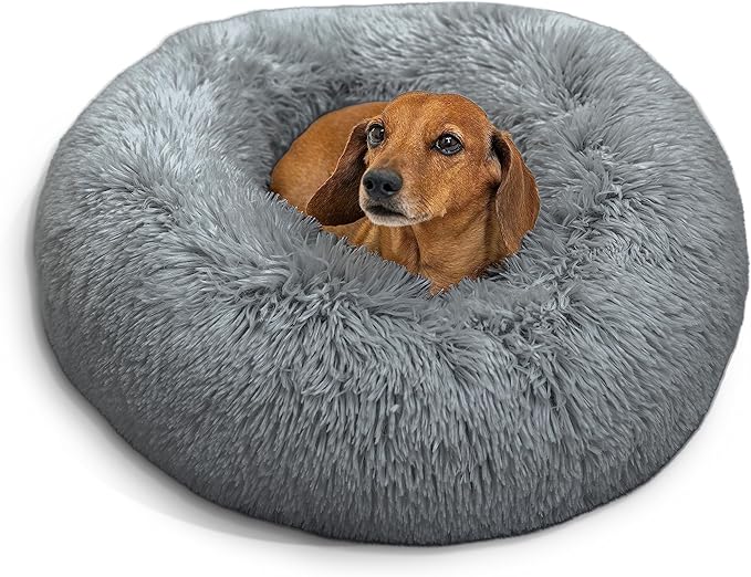 Best Friends by Sheri The Original Calming Donut Cat and Dog Bed in Shag Fur Gray 23"