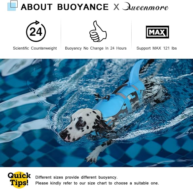 Queenmore Dog Life Jacket Ripstop Dog Shark Safety Vest Adjustable Preserver with High Buoyancy and Durable Rescue Handle for Small