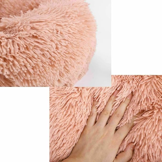 - 😺【Comfy Calming Cat Bed】A plush calming cat bed with raised rim design provides a head and neck support, cat calming bed with donut cuddler shape creats a safe and warm room for small dogs and cats who like to curl up and stretch to get a restful sleep. (Not suitable for pet with excessive teething or chewing behavior).