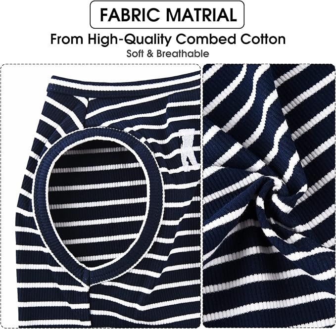 - 【Stretchy & Lightweight】Sleeveless pet vest design, Easy to put on and take off. Suitable for daily wear and as a sports vest. With strong elasticity, Well-sewn, Super stretchy, and suits for pets of all body types, Pets also move freely. It is not only adorable daily wear but also a cared gift. The colors are diverse with stripe, the matching is different, it is fashionable and cute.