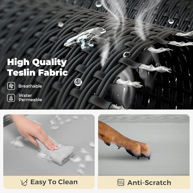 - Stay Cool Ever! Crafted of Textilene mesh fabric, the dog cot allows air to flow, keeping your pets cool while they relax in the heat. Also allow water or urine to go thru, no puddles formed. Besides, the teslin mesh features heat-resistance, sturdy, and breathability.