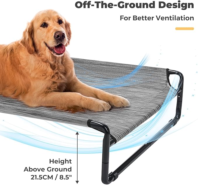 - Stay Cool Ever! Crafted of Textilene mesh fabric, the dog cot allows air to flow, keeping your pets cool while they relax in the heat. Also allow water or urine to go thru, no puddles formed. Besides, the teslin mesh features heat-resistance, sturdy, and breathability.