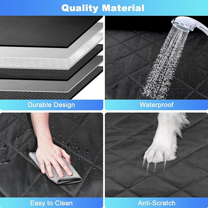- 【Keep Safe and Nonslip】 Our Back Seat Cover has 4 levels nonslip protection design. 4 seat headrest fixed buckles, 2 seat anchors, slip-proof PVC backing and 2 side flaps hooks. Which can keep the covers always in place. Dog seat belt to prevent the dog from being injured during an emergency sudden brakingaps hooks. Which can keep the covers always in place. Dog seat belt to prevent the dog from being injured during an emergency sudden braking