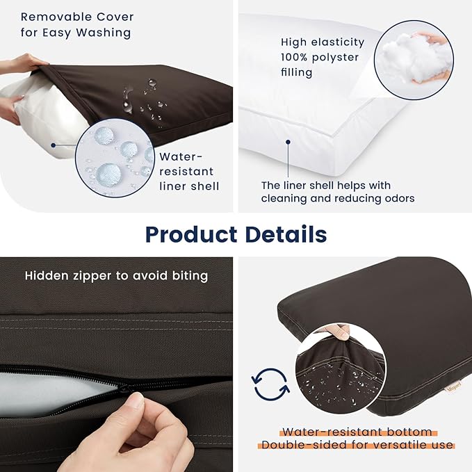 - WATERPROOF DOG BED: Don't worry about getting the canvas dog pillow wet, the washable dog bed has a waterproof lining to keep off liquid leakage and protect the filling. Removable cover with zipper support machine washing and low-temperature drying.
