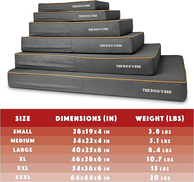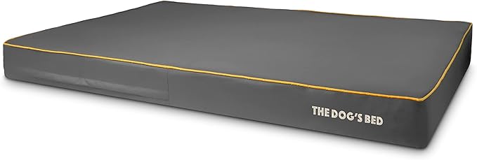 - Amazon's LARGEST DOG BED - XXXL Grey & Yellow Trim (Easy Clean Cover) 64x44x6” waterproof orthopedic dog bed. Solid 2” high density, orthopedic memory foam over a solid 4” base of high stability support foam with covers designed so that your bed fits your home decor seamlessly and your dog can stay close to your family