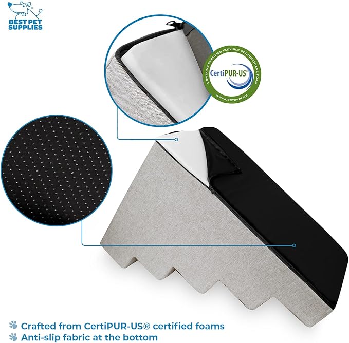 - CertiPUR-US Certified Foam: To ensure that your pet gets the safest quality steps, we made sure that our USA sourced foams are CertiPUR-US Certified. CertiPUR-US Certified foams are manufactured without ozone depleters, PDBW flame retardants, mercury, lead and other substances/chemicals that can be harmful to your pets.