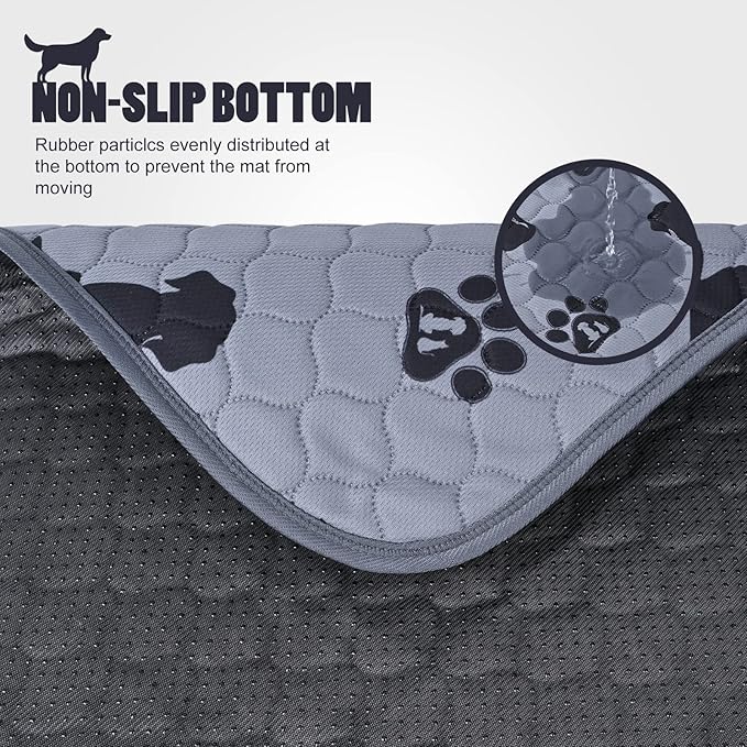 - 🐕4 LAYERS OF HIGH-QUALITY MATERIALS: ①.Smooth and breathable surface layer to ensure the comfort of pets. ② Water-absorbing layer to ensure rapid liquid penetration and absorption. ③ Waterproof layer to ensure that liquids will not leak to the floor. ④ non-slip resistant backing will help keep your floors dry while staying in place.