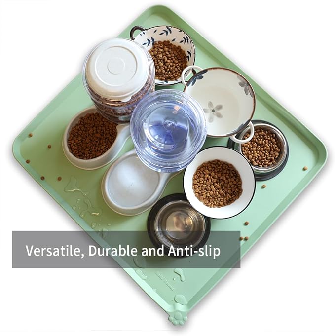 - Extra High raised outer lip prevents food, water and treats from spilling onto your clean floors! Please refer to measurements for size.No more messy spills on floor again.