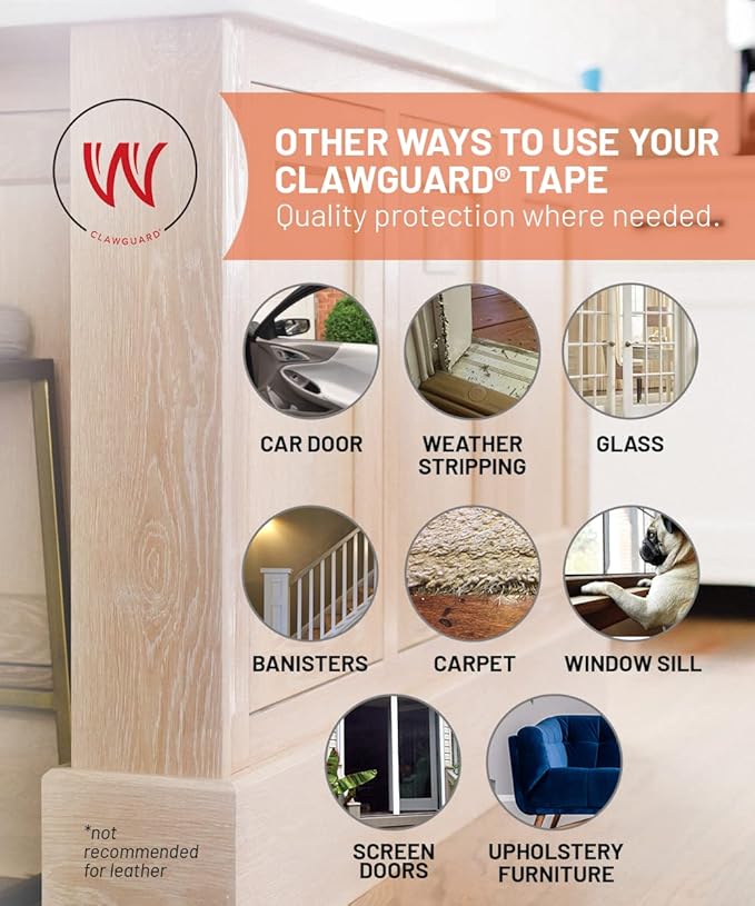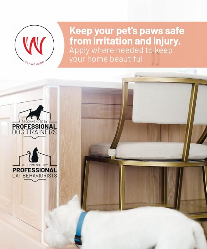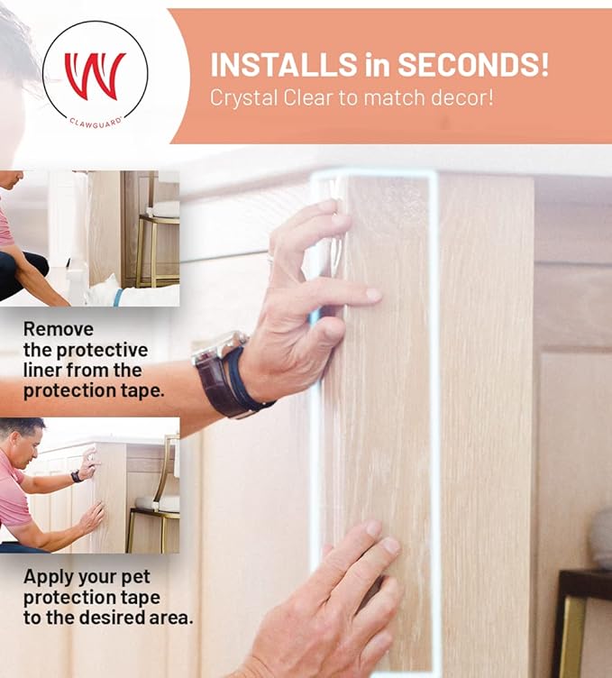 - [ CLEAR AND STRONG ] Designed with quality to protect against sharp nails from scratching, clawing and damage caused by the biggest (and smallest) dog, cat, bird, rabbit or other pet. We combined crystal clear, high tech plastic with a customized adhesive to produce a tough and tested barrier designed to match any décor to keep your home interior clean and beautiful. No sticky residue!