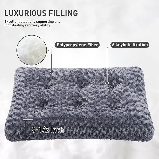 - Machine Washable - Thanks to the 6 keyhole fixation and high quality filling, our kennel pad can be fully washed by hand or washing machine and can remain shape after times wash. Let your pets enjoy a breathable, clean and hygienic crate bed.