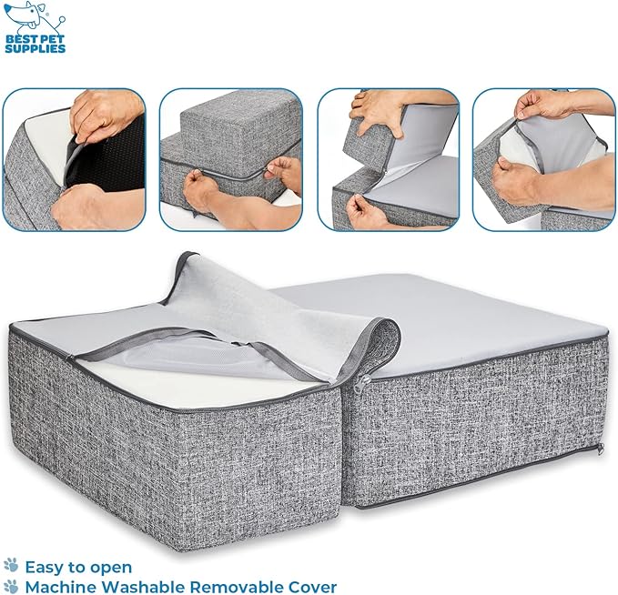 Best Pet Supplies Foldable Foam Pet Steps for Small Dogs and Cats Linen,2-Step