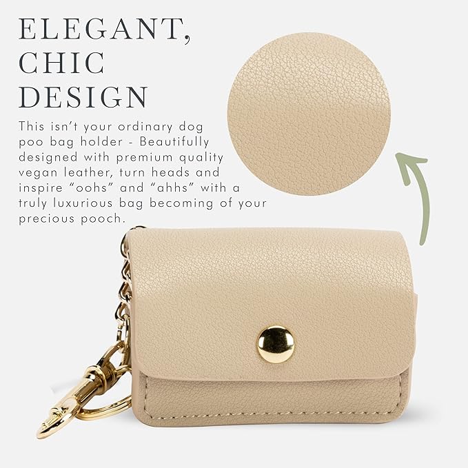 - UNIQUE DOG BAG: As a pet owner, no one wants to get fined because of your doggy. Confidently clean up your pet's poop with our fancy and classy vegan leather waste dog pouch or a cute dog poop bag. With this dog waste holder, you can enjoy the day outdoor without worrying about your dog's waste.