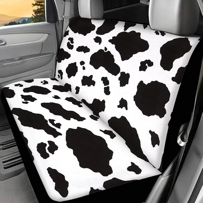 Doojoayie Black and White Cow Print Back Seat Cover Pet Dog Car Seat Cover Travel Waterproof Back Seat Protector Mat Universal Fit Fabric Bench Automotive Seat Covers fits Most Cars