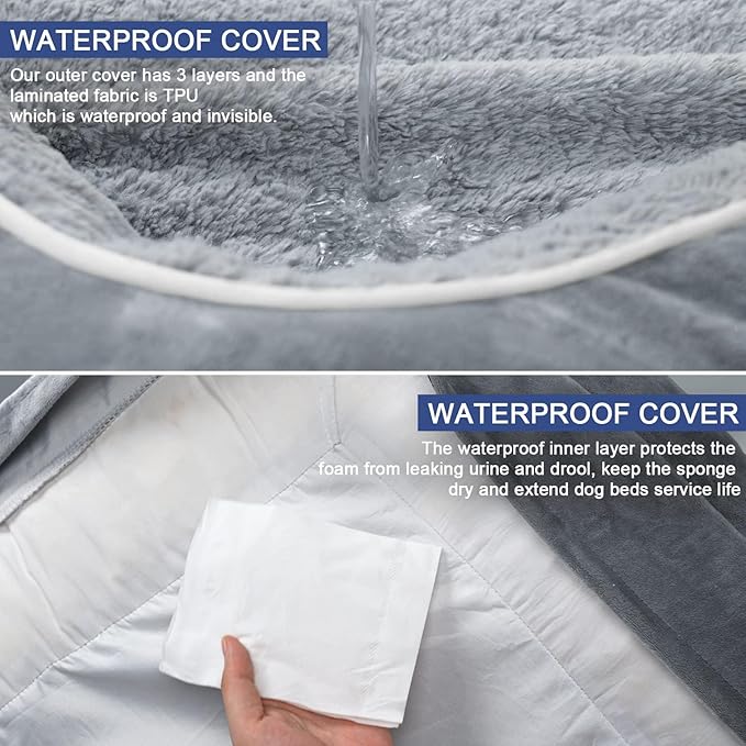 - Waterproof Dog Bed: Waterproof dog bed cover to prevent liquids from penetrating inside; PV velvet brush flower composite surface and crystal super soft armrest offer maximum comfort for your furry friends