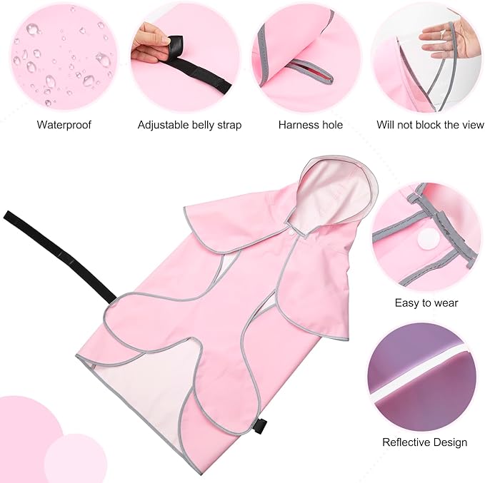 - 🐶Fashionable Dog Hooded Poncho --- The hooded raincoat has a transparent brim that does not block out your dog's view, ensuring safety while out for a walk. This stylish hooded poncho design will make your dog stand out on a rainy day. Also, Here is a dog leash hole, you can put the dog leash acoss the hole and hang it on the dog's collar. This pet poncho is easy to use and easy to wash.