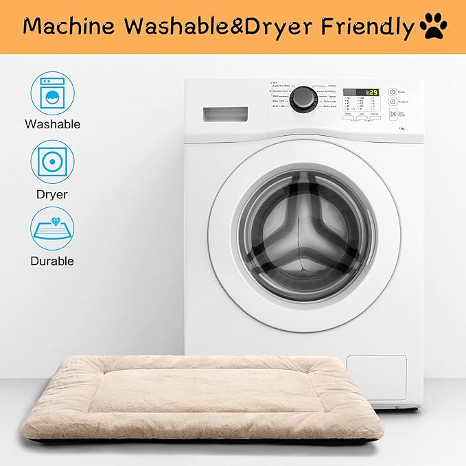 - EASY CARE: You can totally wash this dog bed by machine under moderate mode and dry it by dryer under low temperature or in the sun.It can remain shape well after times wash.This crate pad also has anti-slip bottom which can protect your pets well when they step on or off it.