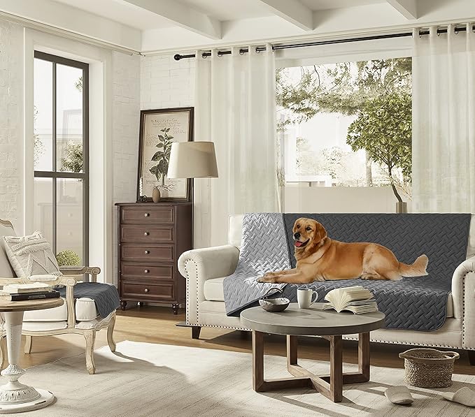 gogobunny 100% Double Sided Waterproof Dog Blanket Soft Pet Bed Cover Reversible Protect Furniture Couch Sofa Car for Puppy Cat Kids (Dark Grey/Light Grey 68x82 Inch 1))