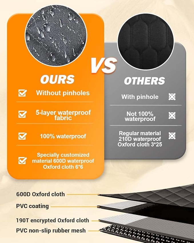 - [Great Material] Made of high-quality 600D oxford cloth and waterproof TPU, our dog car seat cover features great performances of waterproof and scratchproof. There's no single drop of liquid that will get through it. Biting and scratching will not be a problem in your seat anymore.