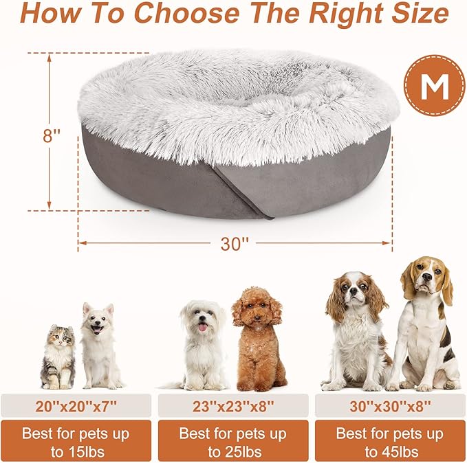 - 🐶【Cozy Circular Design】Indulge your furry friend with the inviting round donut Design - A safe and snug place for cats and small dogs to snooze. The raised rim offers a full sense of security and excellent support, perfect for pets that love to cuddle, curl up, and snuggle while sleeping.