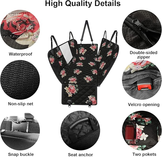 - 【Nonslip & Safe】: Adding a non-slip net made of rubber to the bottom of the back seat cover for dogs, together with four firm headrest anchors and two seat anchors, can better fix the pet seat cushion on the seat. At the same time, there are additional dog seatbelt to ensure the safety of pets in different situations such as braking, turning, etc.