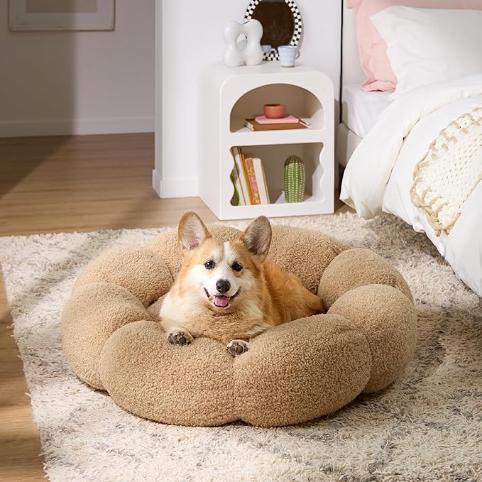 • Cute & Ergonomic Support: Our large dog bed, shaped like a gentle flower, offers 360-degree ergonomic support. Its raised floral rim lovingly wraps around your pet, uplifting their head and neck. A comforting embrace to soothe aches, ease separation anxiety, and offer a serene nap spot after fun-filled playtimes.