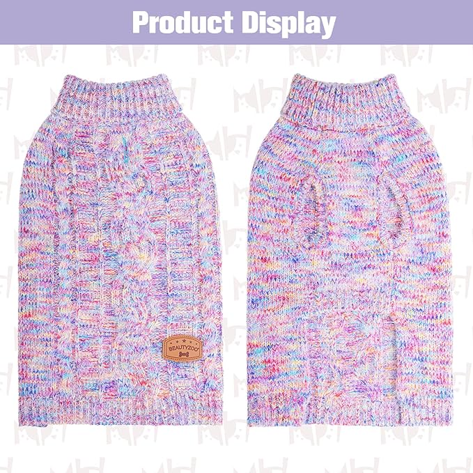 BEAUTYZOO Small Dog Sweater -Turtleneck Pullover Classic Cable Knit Fuzzy Winter Coat Dog Cold Weather Clothes for Small Medium Dogs Puppy Girl Boys(Rainbow Pink, L)