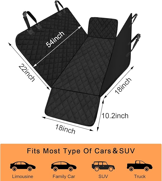 - 100% Waterproof Back Seat Cover for Pet -- Dog Seat Cover Protect your car back seat from scratches and paw scratches while preventing residue of dirt and hair, taking your pet out in the car much easier and make your car is so much cleaner