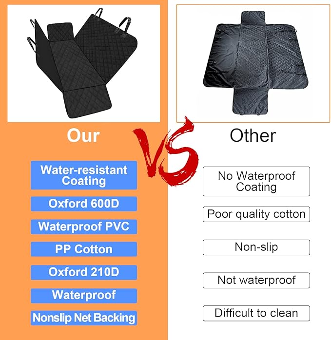 - Scratch Proof Non-slip Car Seat Cover -- Ours Anti-Scratch Back Seat Cover top layer made high quality fabric premium 600D oxford cotton; nonslip rubber backing made EVA material;feature to wear-resistant, easy to washable, wipeable