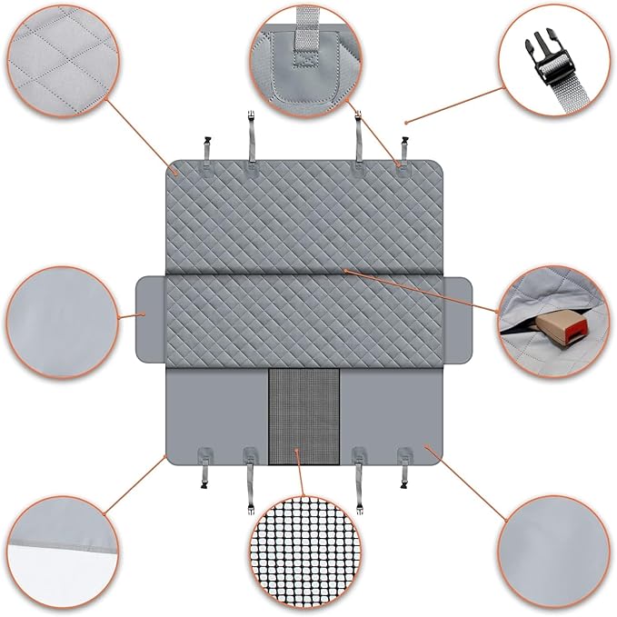 - [ Waterproof-Scratchproof & Durable Materials ] Our car seat covers for dogs are crafted with the top layer of heavy-duty 600D oxford and the mid-layer of sturdy 210D oxford canvas padded with soft stuffing to protect your backseat from scratches, fur, and hair to achieve long-lasting use. And the waterproof coating on each layer creates an impenetrable waterproof barrier between your seats and mud.