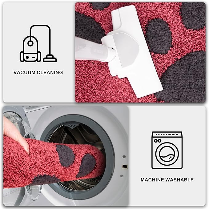 • EASY TO CLEAN: The stain and fade resistant polyester carpet surface can be easily clean by vacuuming. For a deeper clean, machine wash separately in cold water, using mild detergent. Tumble dry, low heat. Do not use bleach or fabric softener. Our door mat will not fade or wear out and will remain like new even after repeated washing.