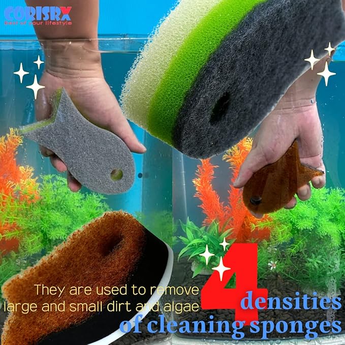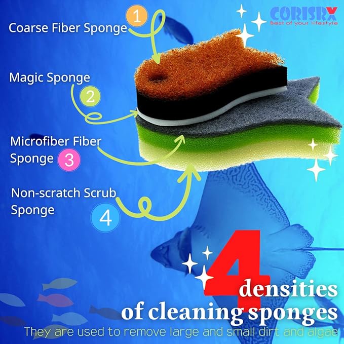 - 4 kinds of density sponge: There are 4 densities of cleaning sponges available to remove large and small dirt and algae.