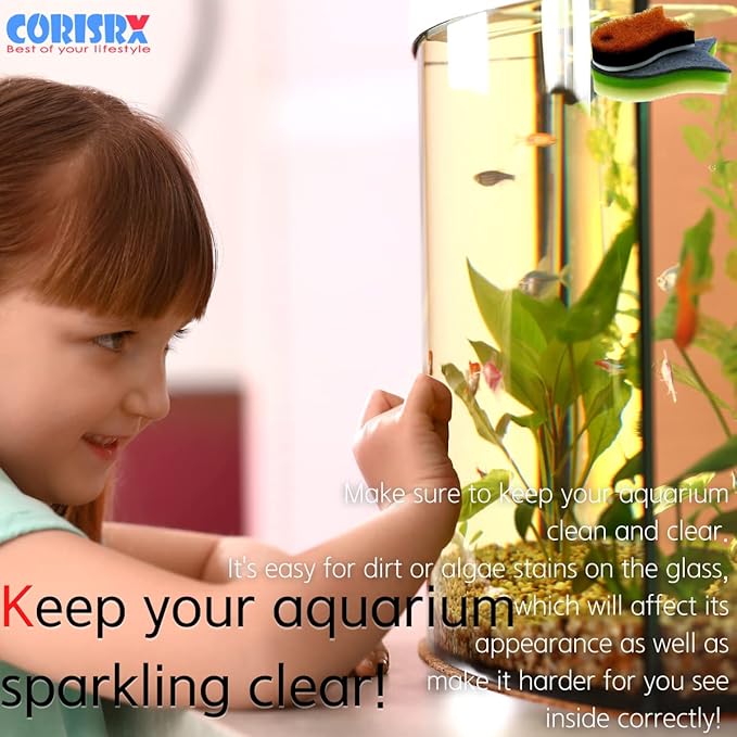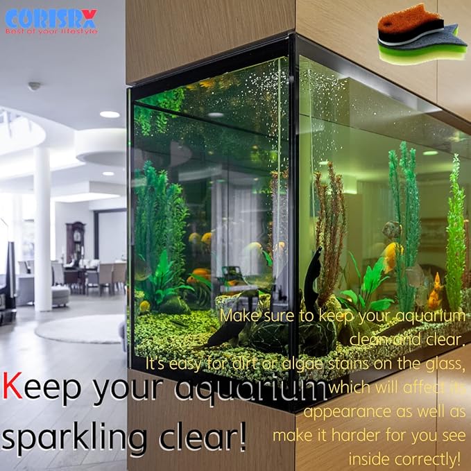 - Your Satisfaction Is Guaranteed - No more high tech, complicated methods for you to use. Simple and convenient are our favorite things! That's where our Fish Tank Glass Cleaner comes in. Our easy-to-use Algae Scraper Pad makes quick work of algae and grime, leaving your fish tank looking clean and clear. Plus, it's safe for use around your precious fish.