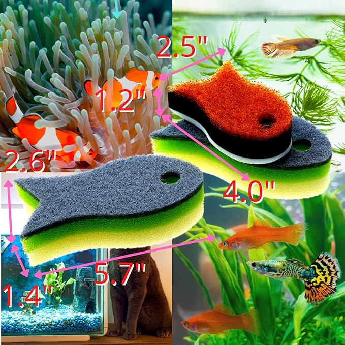 - Ergonomic Shape - This Aquarium Cleaning Sponge Fish Shape is not only a great way to clean your aquarium, but it also makes a great conversation starter when friends come over. This unique sponge is in the shape of a small fish, and is perfect for cleaning algae and other dirt from your fish tank.