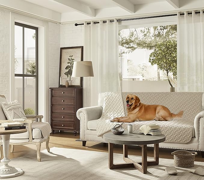 gogobunny 100% Double Sided Waterproof Dog Blanket Soft Pet Bed Cover Reversible Protect Furniture Couch Sofa Car for Puppy Cat Kids (Dark Beige/Light Beige 82x102 Inch 1))