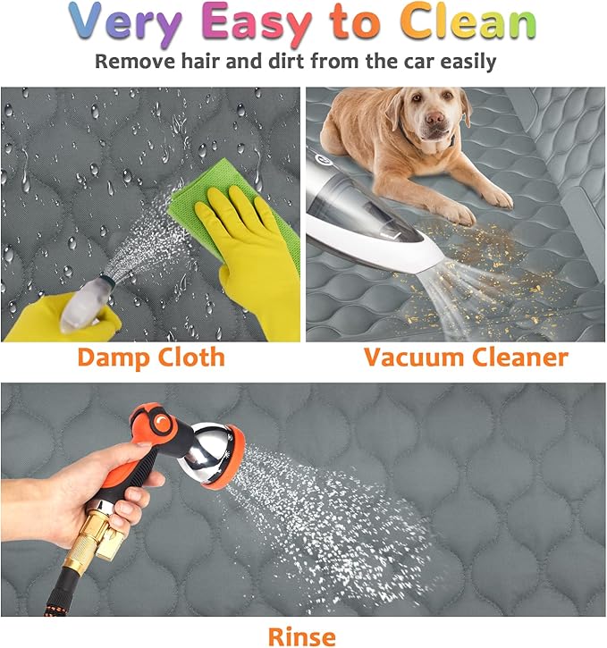 - Easy to Install & Clean: It only takes seconds to install or remove the dog back seat cover. With waterproof coating, the dog car seat cover will keep your backseat clean no matter how dirty your pet gets. Just clean with a damp cloth or vacuum, and the pet seat cover will be as clean as new. Save you lots of cleaning time!