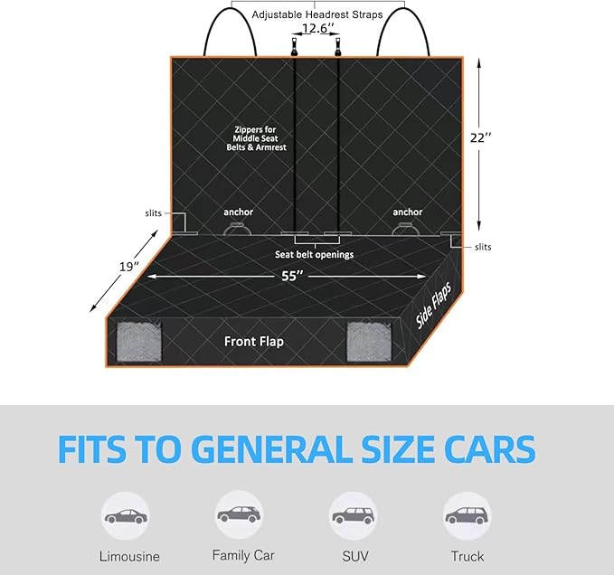 - SAFE FOR YOU & YOUR DOG: Design of this dog backseat cover with Non-slip mesh backing, durable buckles with adjustable straps and 2 sturdy seat anchors ensure that the cover will not slide, fits SUV Trucks Cars Jeeps Vans.