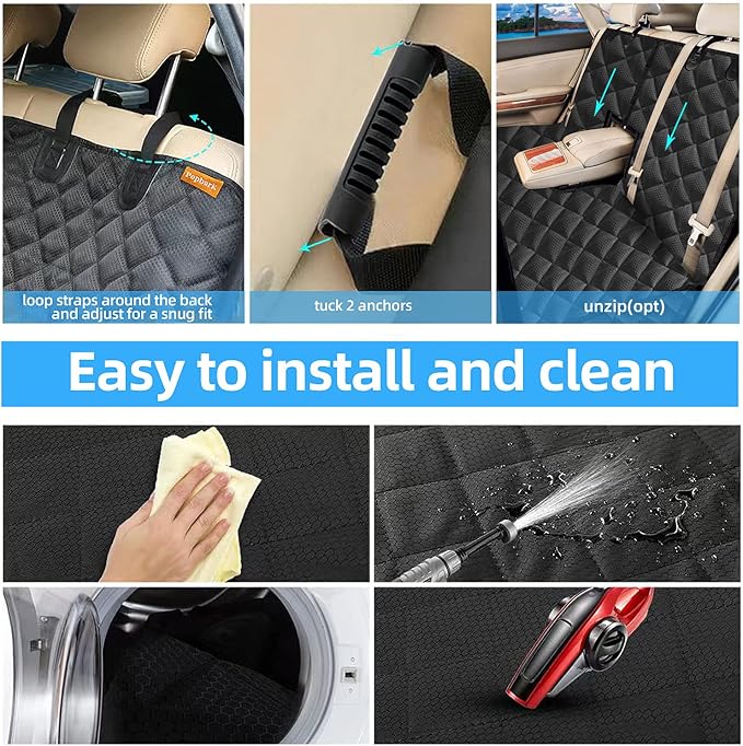 - EASY TO CLEAN & INSTALL - Our Car Seat Covers for Dogs easy to clean with a towel or vacuum, rinse with water or machine wash in gentle cycle. Easy to install with buckle straps, snap them around back headrests and tuck in seat anchors. Secure side elastic straps around seat corners. The extra-wide slots make it easy to install kid’s booster seat