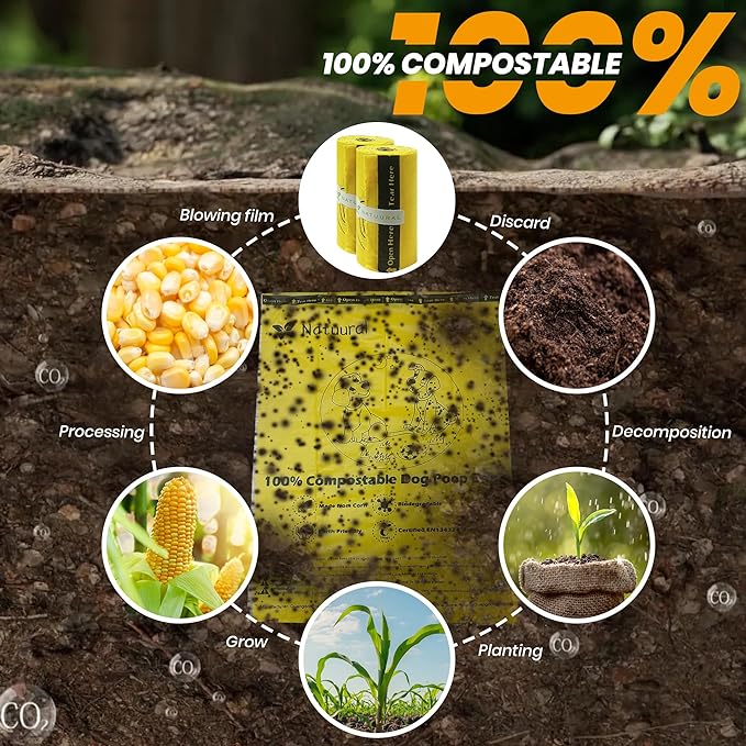 - 🌱 These compostable poop bags are designed from plant-based materials, they are certified by EN13432 in Europe and ASTM D6400 from America, extra thick and strong, they are the frist choice for our pet owners