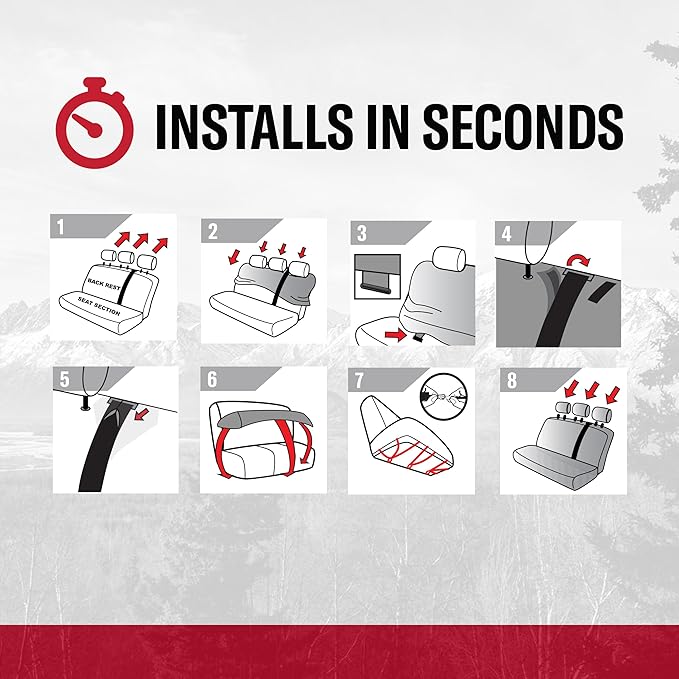 - [EASY INSTALLATION] Putting on a new set of car seat covers shouldn't be a chore. The innovative Express Fit hook- and tie-free installation system allows you to get these seat covers for cars on and securely fastened in a matter of minutes.