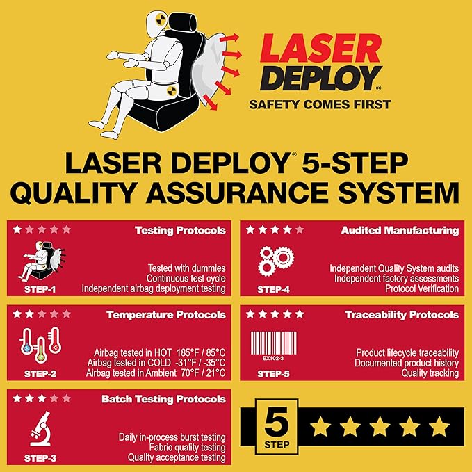 - [AIRBAG SAFE] Suitable for a wide assortment of vehicles that are equipped with or without side-impact airbags, our patented Laser Deploy technology allows the airbag to safely deploy through the side of the seat cover.