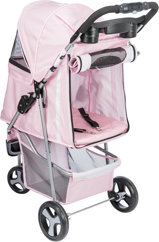 - A large undercarriage storage basket to ensure enough storage space when you travel, shopping, or strolling; cup holder tray is perfect for your water bottle, treats, keys, and other essentials