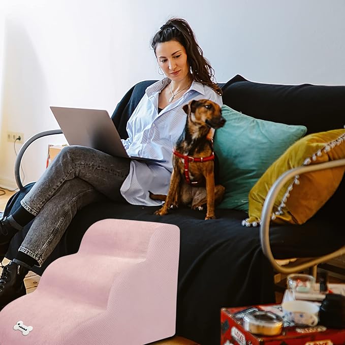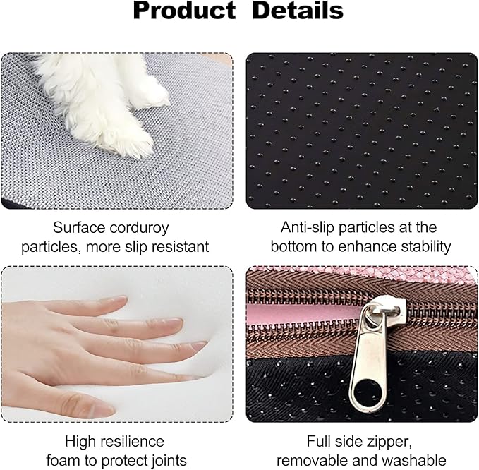 - Anti-slip design: The outer layer of the pet stairs is corduroy material, which is non-slip and durable, allowing pets to climb easily. The non-slip design at the bottom prevents pets from falling and provides stability. The suitable height design of the pet stairs reduces impact with minimal jumps, allowing pets to easily get to where they want to go.