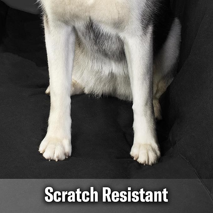 - [SCRATCH RESISTANT] This seat cover makes it easier to go on adventures with your four-legged friends. Heavy-duty cloth construction protects seats from fur, dirt, and claw scratches so you don't have to worry about damage to your upholstery.