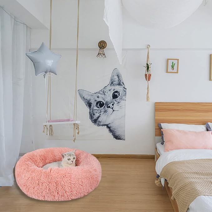 - Cat beds or dog beds are donut design, The raised edges create comfortable sense of security, while providing head and neck support to help kitten or puppy calm down faster, Get a more comfortable and stable sleep