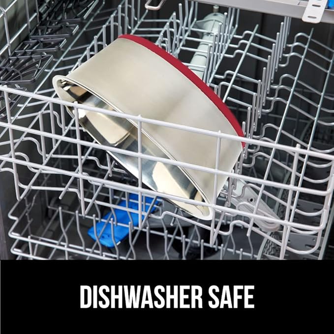 - HEAVY DUTY STAINLESS STEEL: constructed from durable, rust and dent resistant stainless steel for long lasting use; heat resistant and perfect for serving both warm and cold foods; plus, the silicone on the bottom is naturally waterproof and stain resistant, so your bowls will stay looking great, use after use