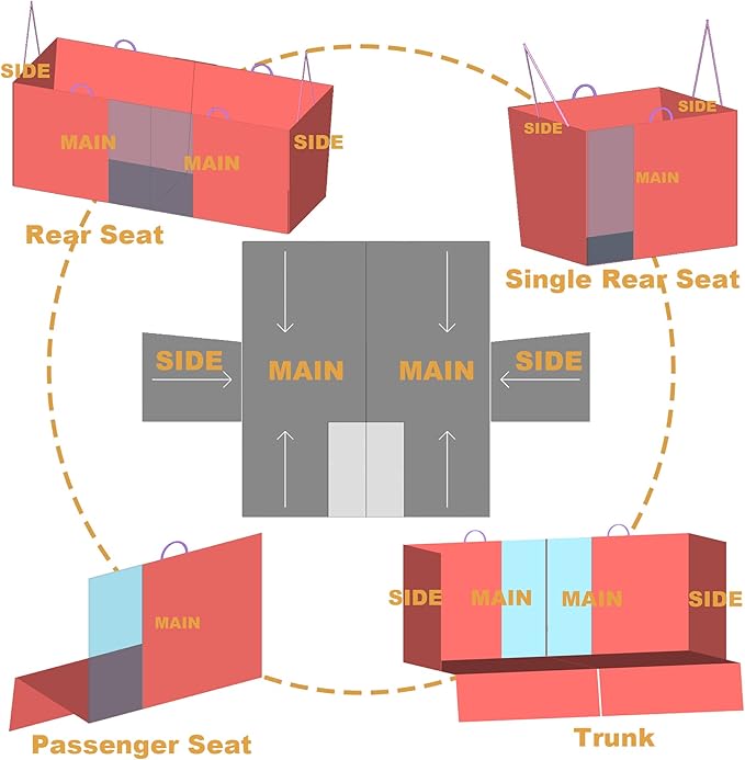 - Zippers Design for Easy Switches:The dog seat cover is designed with anti leakage zippers, we can easily convert it to the form our want by zipping in a second!There are what you will get:①Dog Hammock for Car ②Front car seat covers for dogs③ Bench back seat cover for dogs ④Trunk Cargo Liner ⑤single dog backseat hammock⑥Picnic Blanket