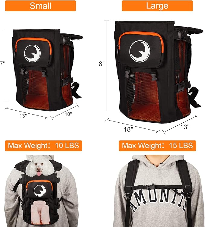 - 【Appropriate Size Pet Backpack Carrier】13"*10"*7" pet carrier backpack is designed for carrying small dogs/cats, maximum load of 10 lbs (4.6 kg) . Please don't choose the carrier only based on weight but also reference your pet's length and height.