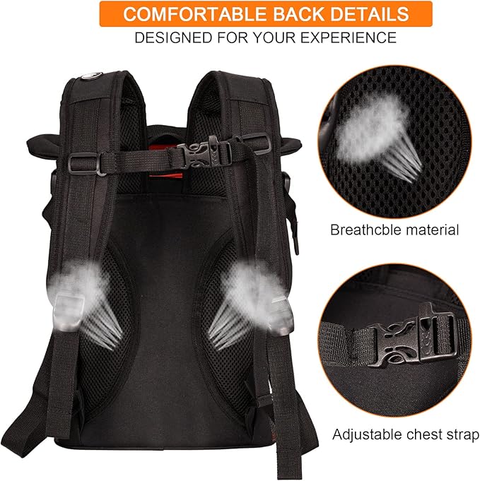 - 【Ergonomics Design】Pet backpack is equipped with shoulder straps and chest straps to make you more stable when carrying pets. The shoulder straps are equipped with extra thick padding for more comfort and reducing pressure on the shoulders.